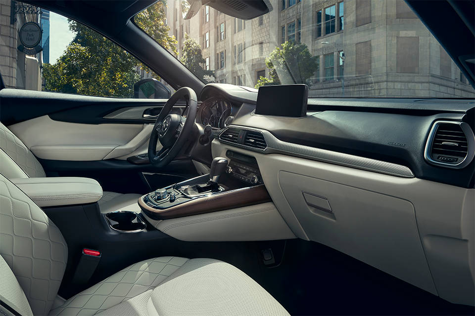 - CX-9 Signature: This top-level trim goes the extra mile with quilted leather upholstery and wood interior accents for added elegance.