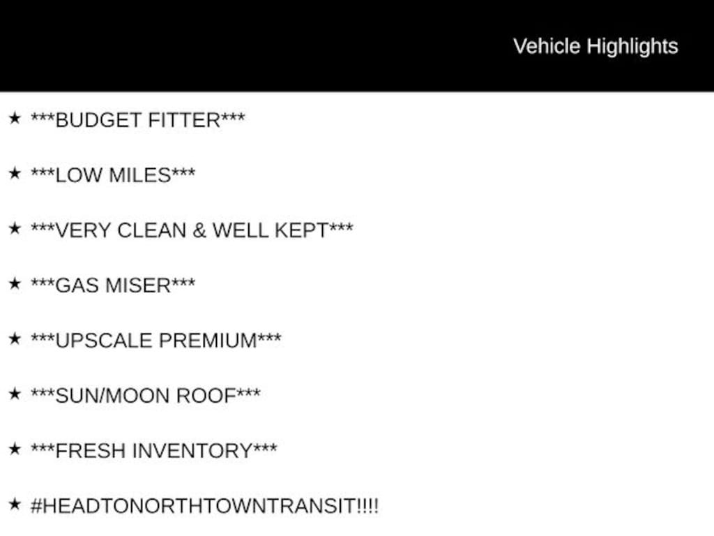 NOTICE: Price does not include applicable taxes, including sales, use and tire taxes, fees for registration, title and license plates and dealer document/service fees. Vehicle availability, pricing, and description are subject to change without prior notice. While we make every effort to provide accurate information on this site, the actual description and condition of the vehicle must be verified by you at the time of purchase. Interest rates (APR) and financing terms are based on, among other things, your credit and the age, model and purchase price of the vehicle. Gas mileage ratings are based on EPA estimates and mileage will vary depending on options, driving conditions, driving habits, and fuel quality. While every reasonable effort is made to ensure the accuracy of this information, we are not responsible for any errors or omissions contained on these pages. We cannot guarantee a vehicle will be available for delivery when requested. We cannot guarantee a recall-free vehicle. For recall information please CLICK HERE - website provided by NHTSA.