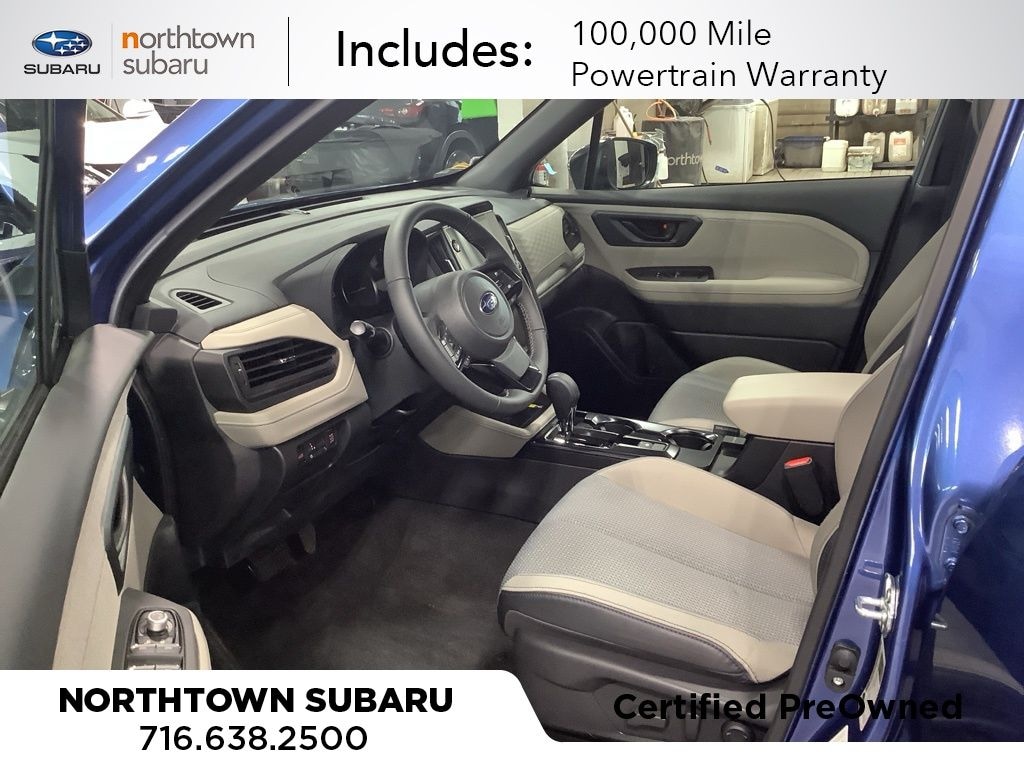 Step inside this Forester Premium and experience the epitome of modern comfort and convenience. Indulge in the premium textured cloth upholstery, heated front seats, and power driver's seat, creating a truly luxurious and personalized driving environment. The panoramic power moonroof floods the cabin with natural light, enhancing the overall ambiance.